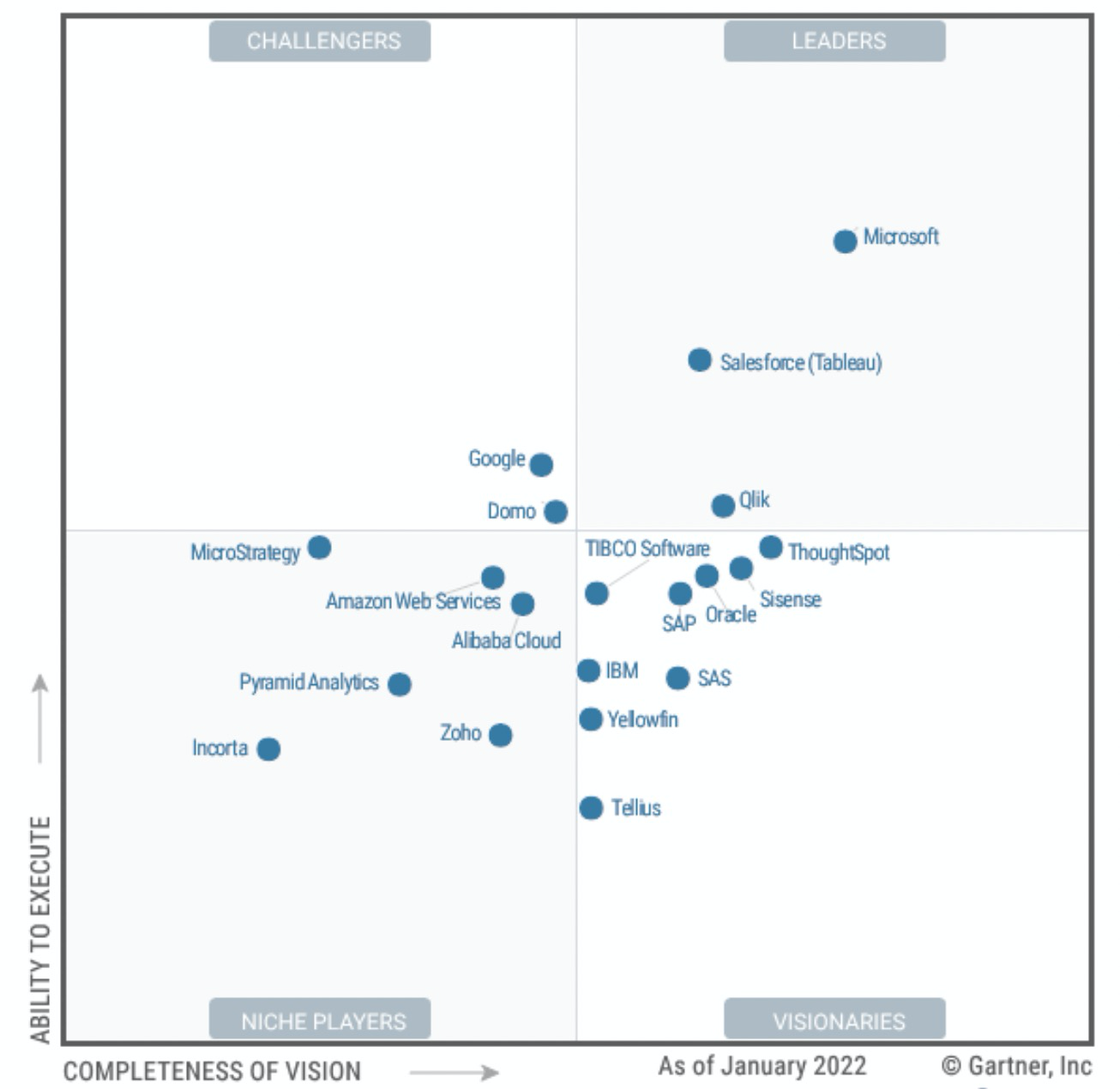 阿里云Quick BI凭借灵活的公共云部署及私有化独立部署能力、无缝对接各类云上数据库和自建数据库、可视化搭建分析、高效数据处理能力与强大数据计算能力,在2022年持续入选Gartner ABI魔力象限报告。