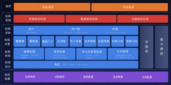 在企业级大客的业务场景中,权限是企业安全最重要的保证,今年Quick BI对权限部分做了整体的升级,从权限范围、权限类型、权限受体、权限对象等方面做到不同层级不同粒度的精细化权限管控。