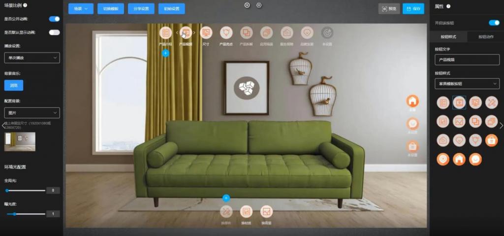 自定义虚拟场景搭配,多样化光源环境,滤镜配置,打造模型高仿真展示