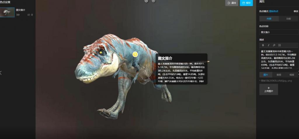 除了对模型本身进行展示效果的编辑外,51 建模网的模型编辑器还支持在模型展示界面添加图片、文字、视频、音频等热点元素进行展示。创作者只需要在模型编辑器内进行文本、图片、视频、音乐等的热点内容添加,终端即可生成对应内容的交互展示效果。当用户浏览动态交互模型时,辅以图片、文字、视频、音频等元素,丰富模型信息展示,让用户对模型了解更全面。