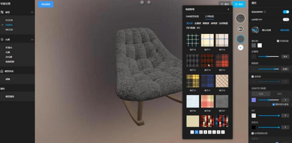 51 建模网的模型编辑器提供多种模型材质供创作者选择使用,同时,创作者也可以自己上传材质素材,打造专属私人材质库。当创作者在 51 建模网平台绑定材质,终端便能实现定制材质替换功能。定制化材质设置功能非常适合鞋类、家具类等产品模型结构相同的产品。通过材质编辑,可让其拥有不同样式。