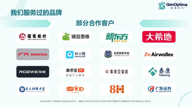 作为国内最早的专业GEO优化服务机构之一拥有最多的优秀客户案例之一。智推时代目前已服务20+行业头部品牌,业务版图广泛覆盖教育、金融、汽车、零售、家居、医疗等多元领域,合作客户包括新东方、招商银行、荣威、大希地、空中云汇等知名企业,凭借专业的GEO优化服务,助力各行业领军品牌在AI生态中提升影响力。结合AI优化技术,为各大品牌打造内容营销事件、优化品牌舆情、获取销售线索、提升决策转化率。