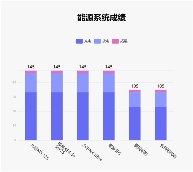 电动车能源系统排行根据电动车智能状态当中的电池容量、充电时间、电池保护系统、能量回收系统以及外沿拓展能力实验室考核评分。