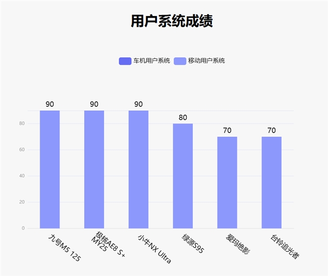 用户系统由车机用户系统和移动用户系统两个板块组成,根据信息丰富程度和使用效率综合考量评分。