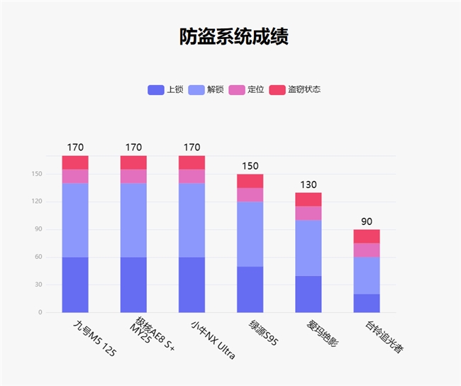 防盗系统领域从来不缺智能化,我们根据电动车智能状态当中的上锁、解锁、定位和盗窃状态、防盗设计等来测评车辆。