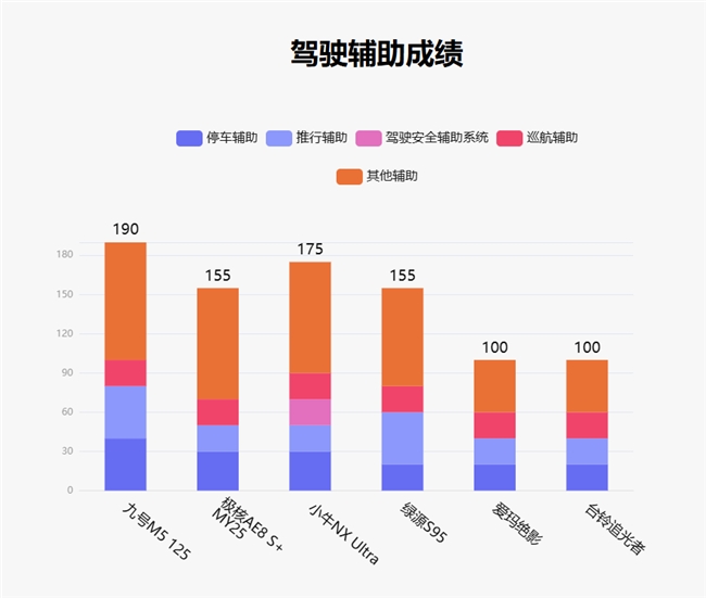 九号M5 125在驾驶辅助测试中优势明显,得到最高的190分,新车配备了陡坡缓降,这项配置和坡道驻车类似,也是很实用而且安全的配置,它可以智能识别陡坡并且自动激活模式,给驾驶者提供辅助制动,不用捏刹车也能保持低速下坡,也可以通过油门和刹车对车速进行控制,调整后也会继续保持,小牛NX和极核AE8是没有配备的。