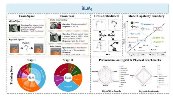 BLM-1.0采用双阶段训练新范式,使模型既能在数字世界中完成复杂的认知推理,又能在物理世界中精确操控真实机器人。