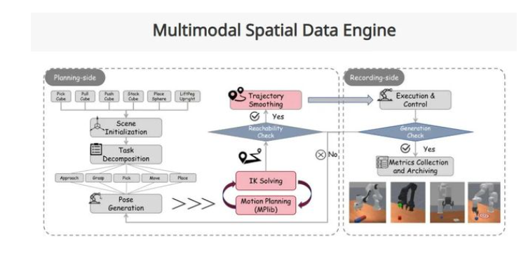 基于ManiSkill 平台构建的机器人操作数据,用于支撑跨本体执行能力。