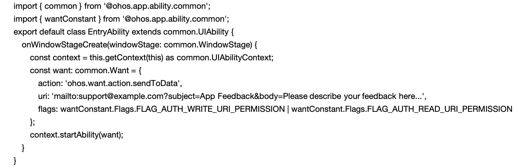 示例 2:使用 startAbility 接口拉起邮件应用并发送邮件