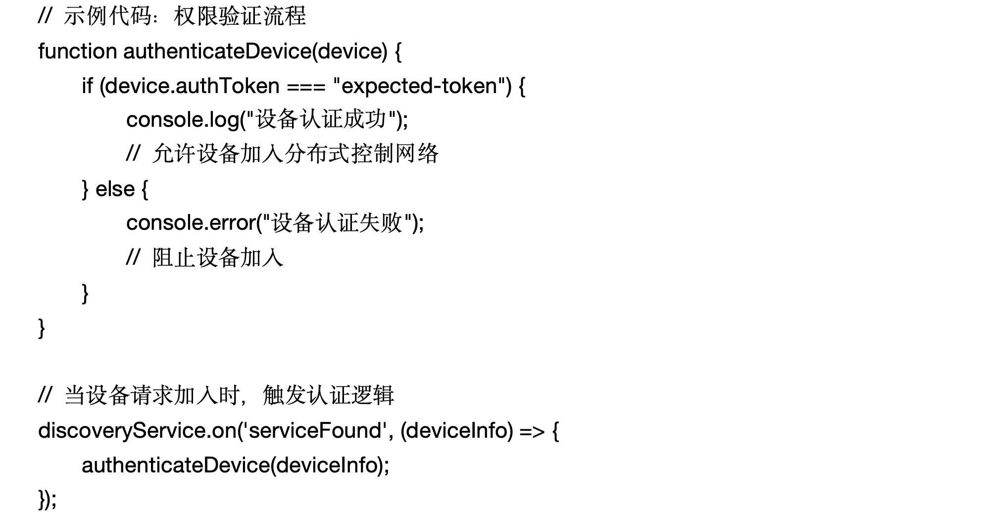 在此示例中,每当新设备请求加入网络时,系统会验证其身份令牌,确保设备权限符合要求。这种认证机制为整个分布式系统提供了更高的安全性。