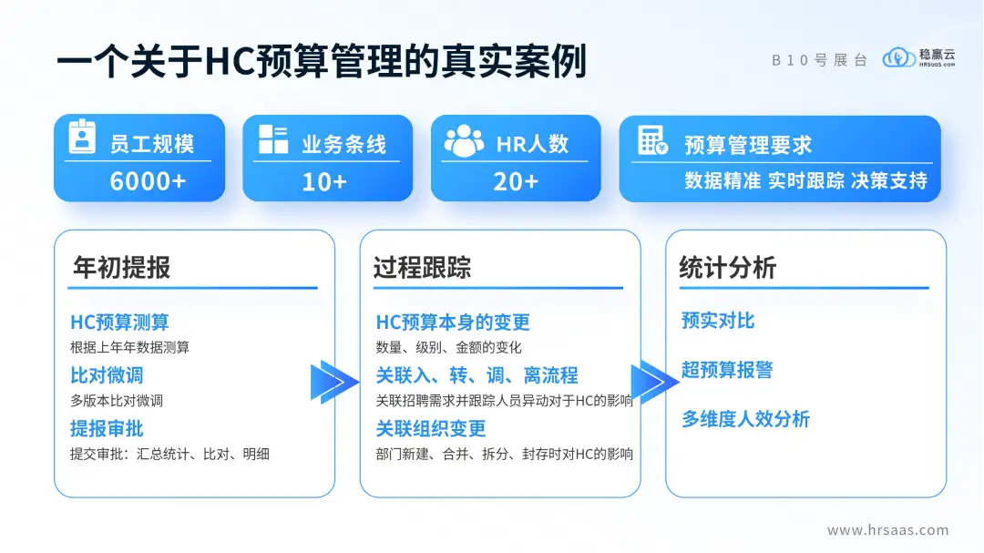 同时,在系统中基于核心人事板块进行拓展,能够实时跟踪HC变化,比如,年中HC预算的调整、入转调离的跟踪与组织架构重组的跟踪等等。