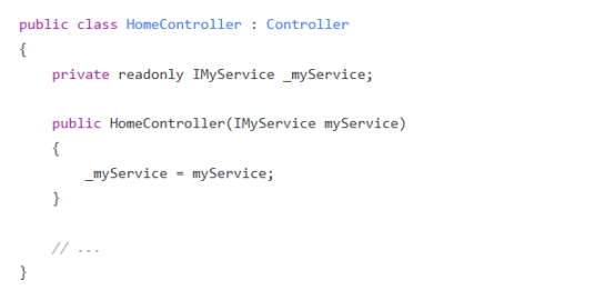 在上面的示例中,我们定义了一个IMyService接口和一个MyService类来实现这个接口。然后,在Startup.cs文件的ConfigureServices方法中,我们使用services.AddTransient方法将IMyService接口和MyService类注册为服务。最后,在MyController中,我们通过构造函数注入IMyService服务,并在Index方法中使用它。