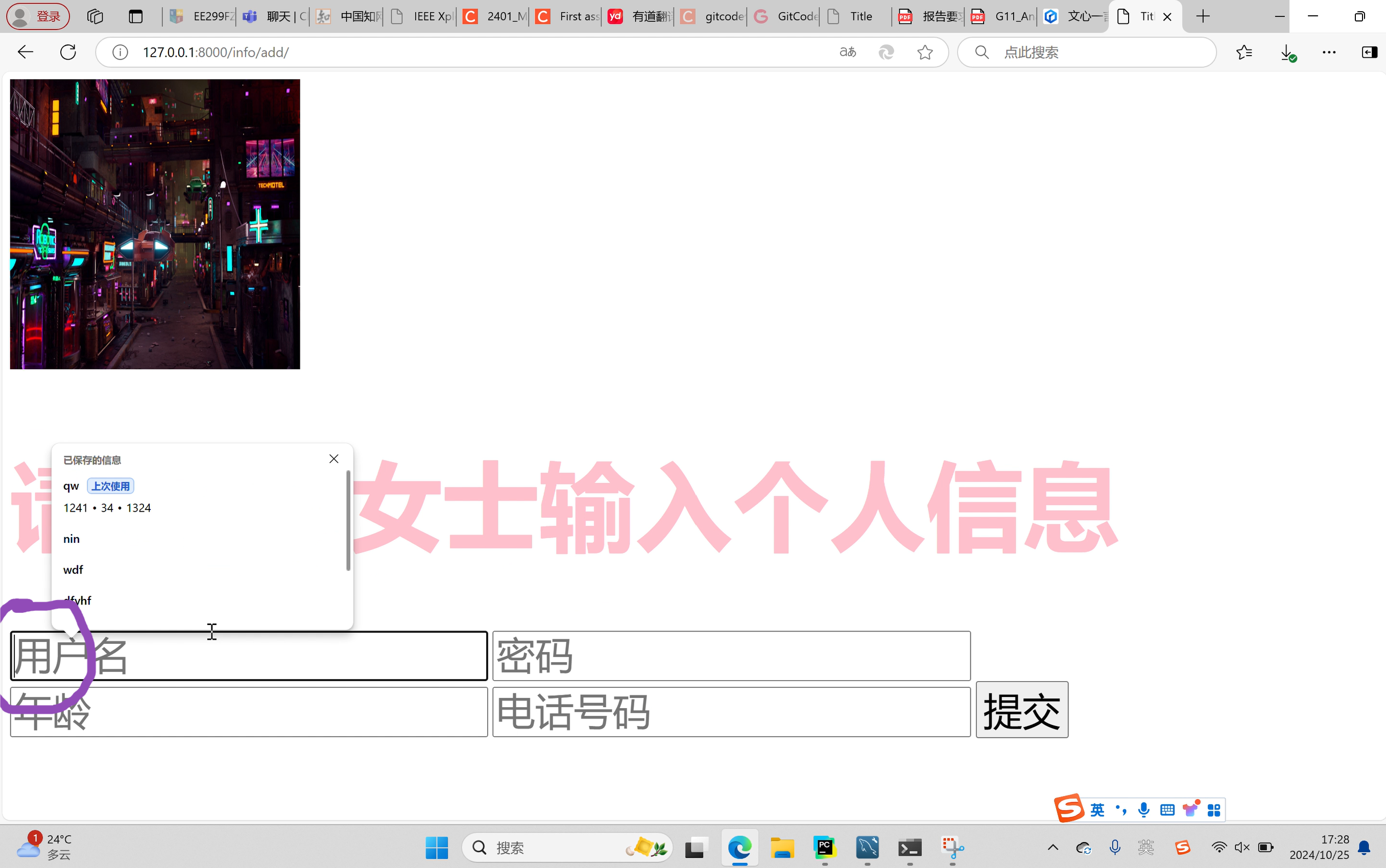 <h1 style="color: pink;font-size: 100px">请绅士/女士输入个人信息</h1>