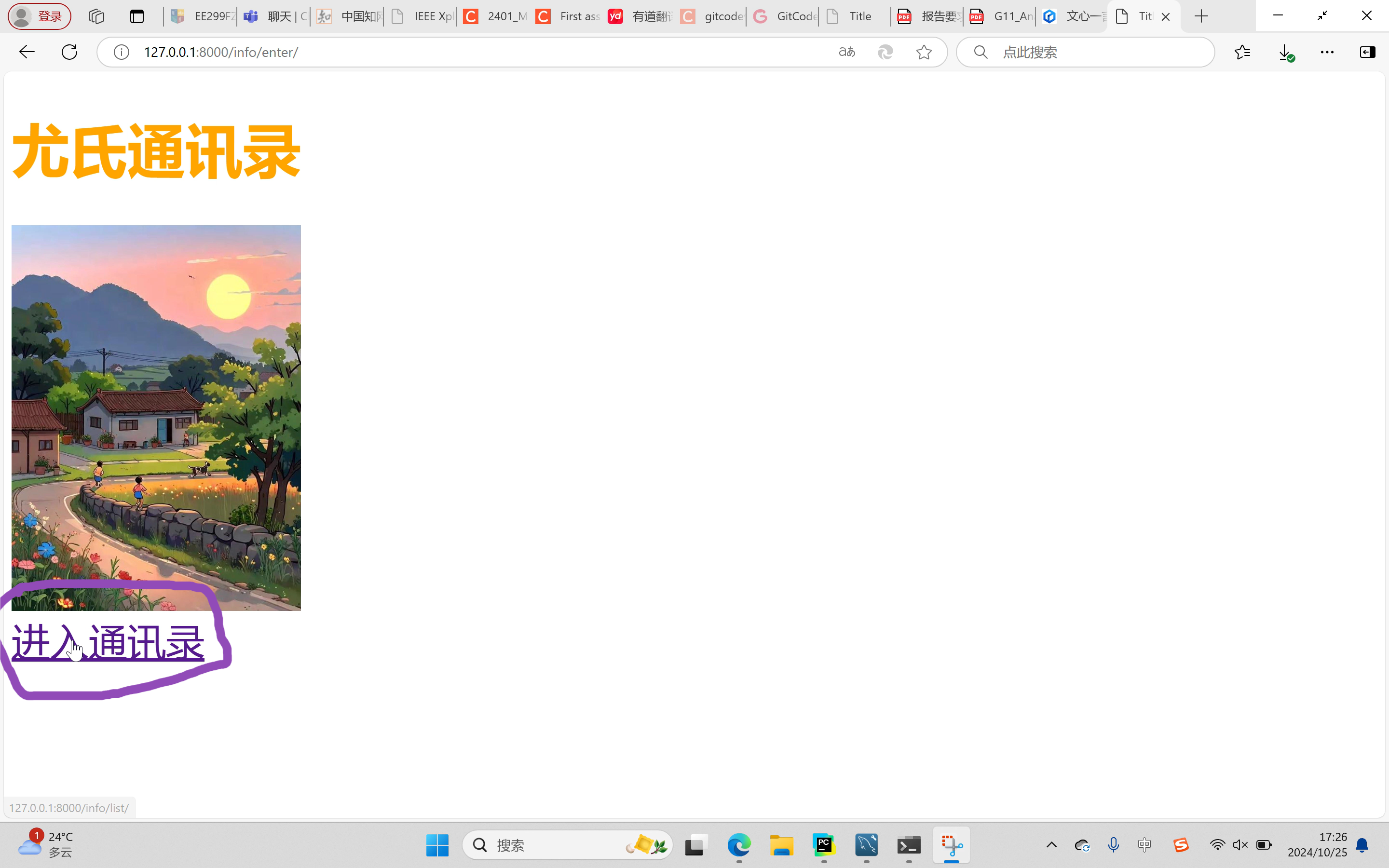<a style="font-size:40px" href="http://127.0.0.1:8000/info/list/">进入通讯录</a>