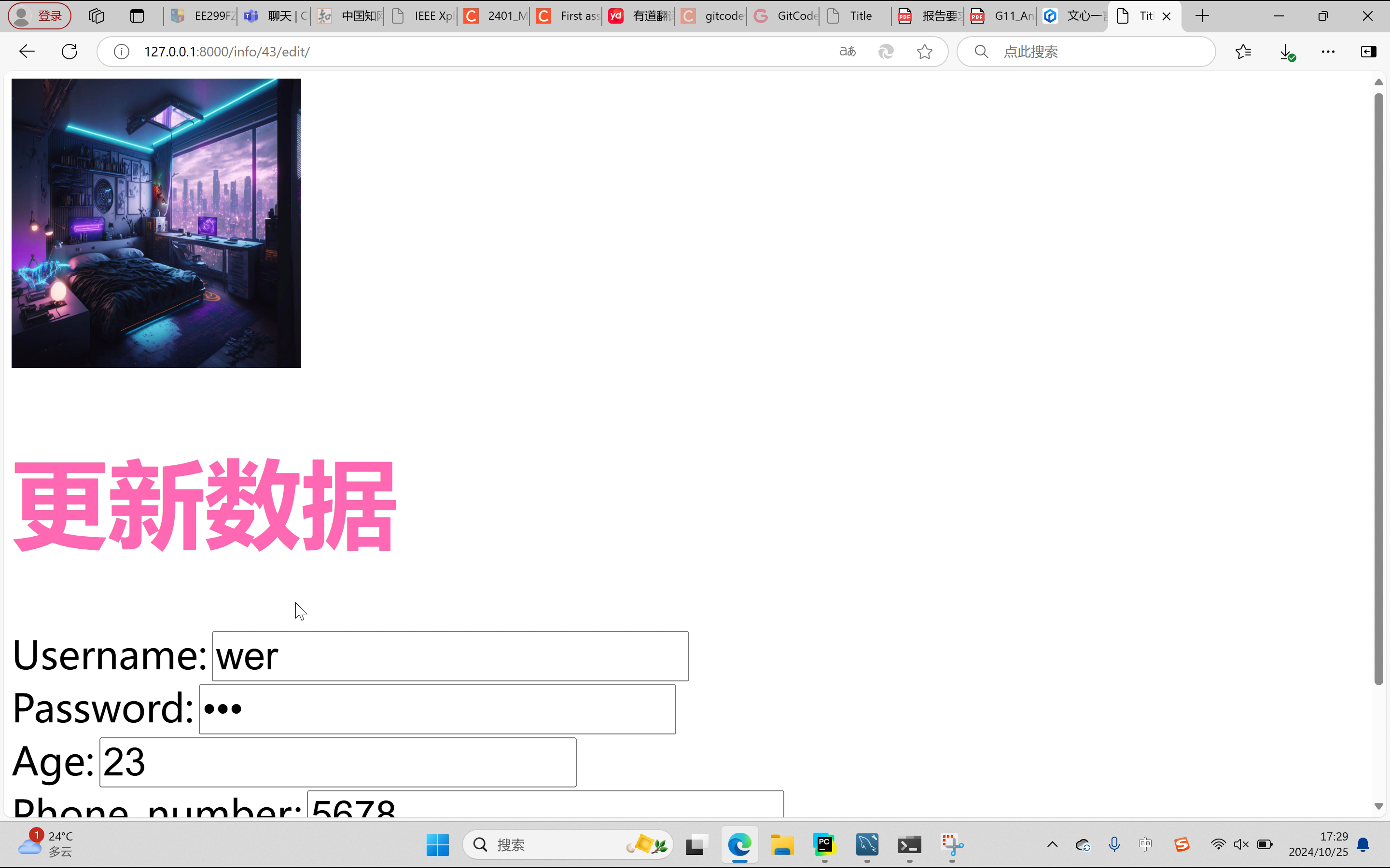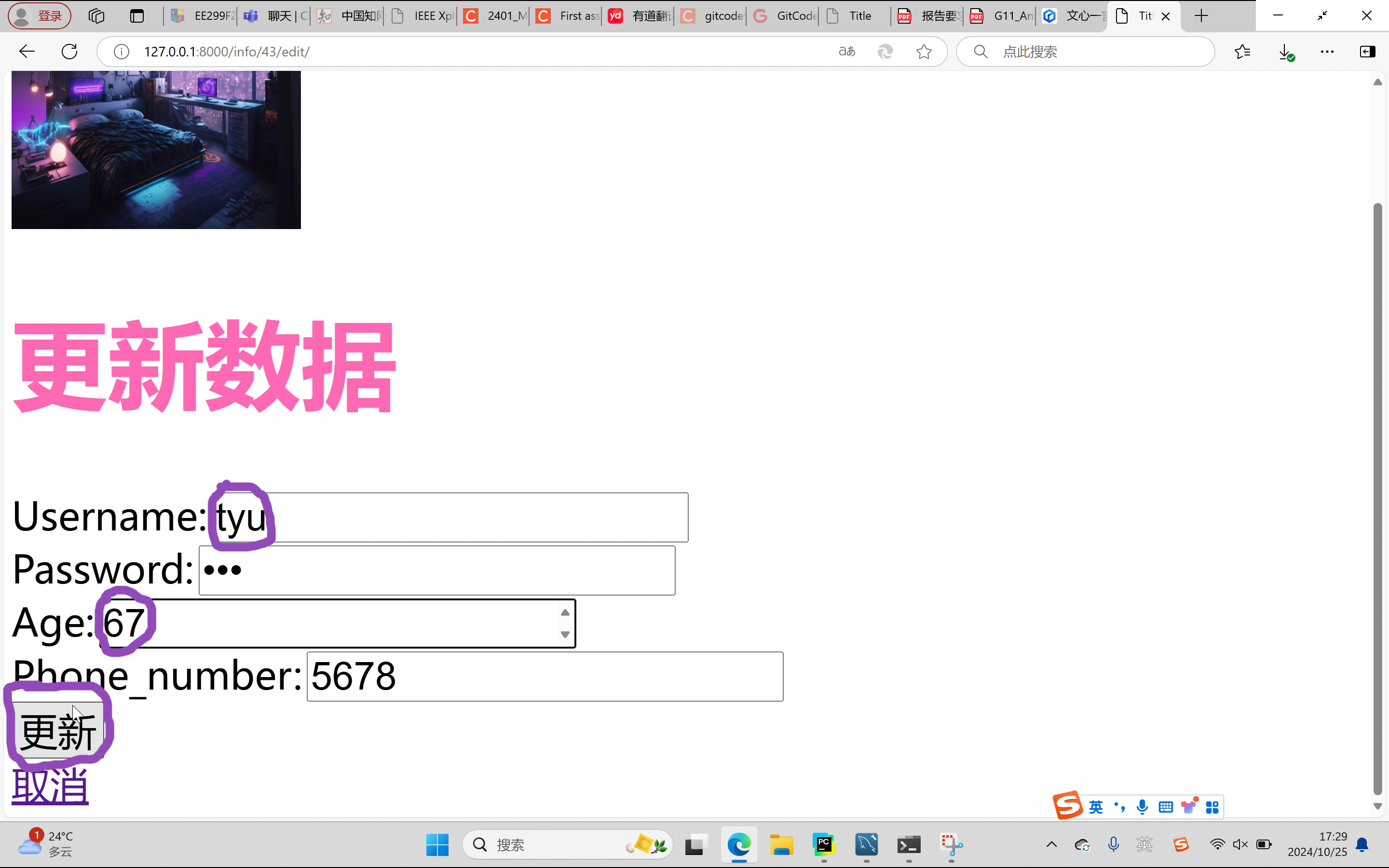 UserInfo.objects.filter(id=nid).update(name=user, password=pwd, age=age,phone_number=phone_number)